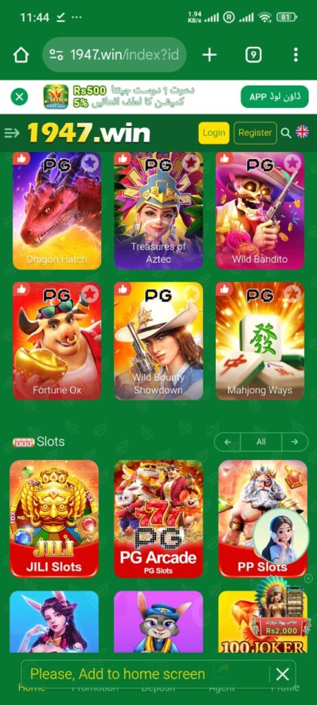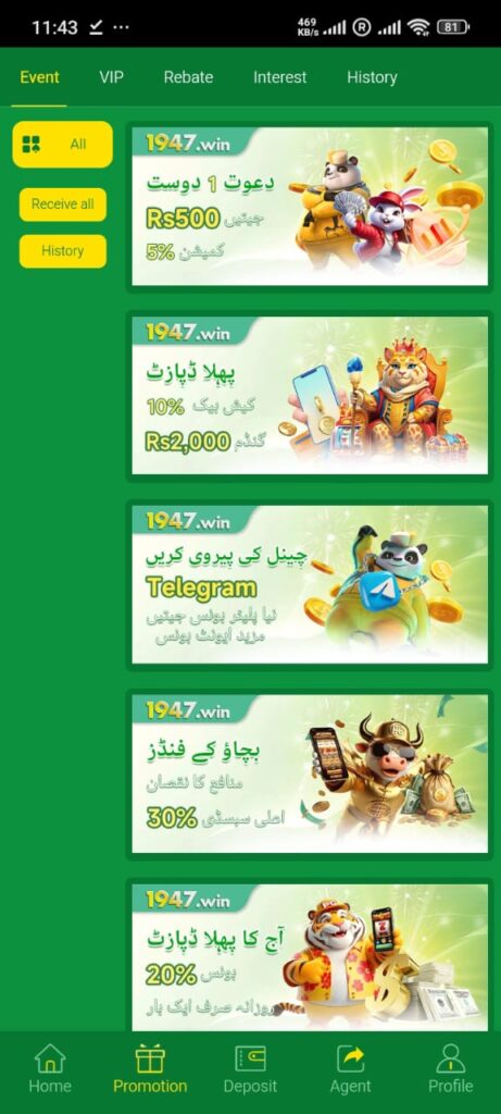 Website Languages: 1947win Game application is developed exclusively with the Pakistani audience in mind; therefore, the languages it supports are Urdu and English only. This aspect makes the platform easy to navigate and accommodating to a wide range of players. It will guarantee them ease in surfing, unambiguous guidelines, and fun as they play their games. The bilingual choice will come in particularly handy when it comes to users who are new to online gaming and require clarity.
