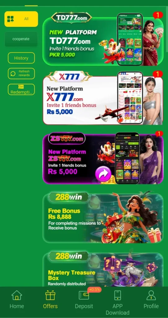 Users can get welcome bonuses, reload bonuses, free spins, and promo codes. There is also a referral bonus program. These rewards give extra chances to play and win. Always check bonus terms before claiming offers.