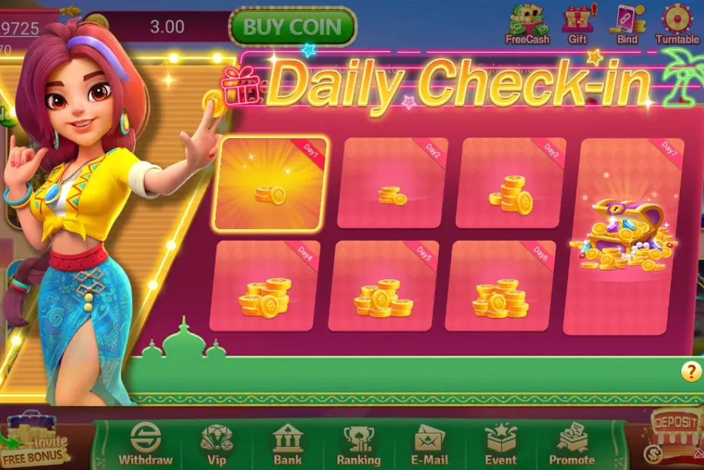 - Daily free spins and coins