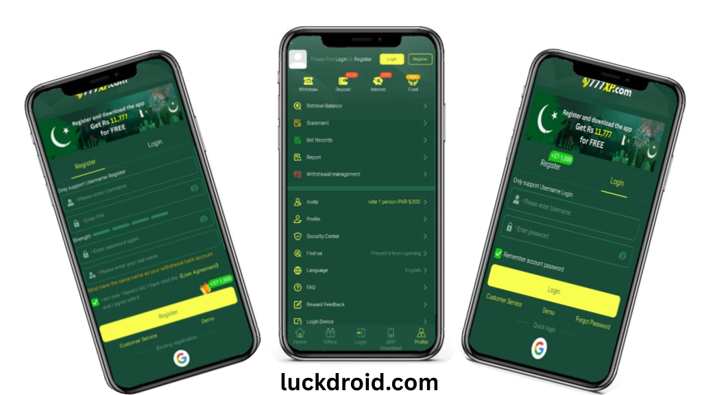 - Launch the App: After your download, the 777xp APK file must be installed by tapping on the icon on the screen after downloading and installing the app on your Android-based device. You will notice an open option on its screen, log in or open an account. To begin the registration process, you need to click on the button marked with the word Register. Interface is designed in a simple and user friendly manner particularly among the Pakistani population.