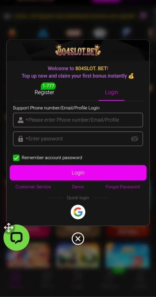 How to Register and Login on 804Slot Game