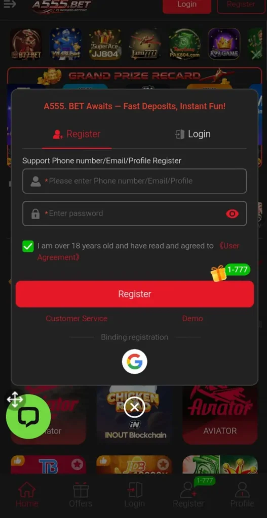 How to Register and Login A555 Game