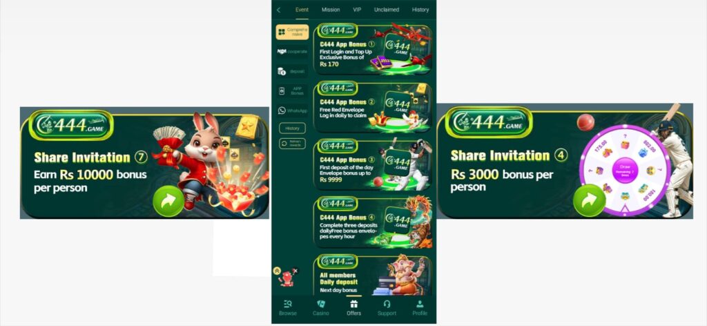 Free Rewards & Bonuses: C444 continuously has additional rewards such as daily bonuses on logging in and regular promotions to make the experience thrilling.