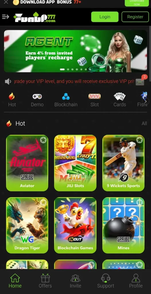 - Launch the App: First, open the Funup777 app on your mobile phone.