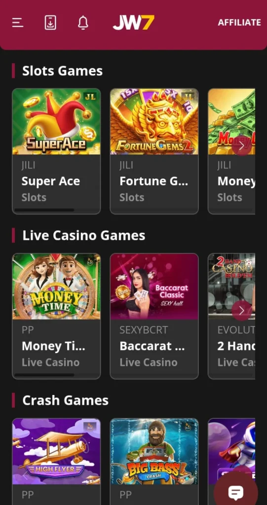 JW7 has a simple and easy-to-use interface. Beginners can navigate without confusion, and experienced players can quickly find their favorite games or features. Menus are clear, buttons are easy to press, and all game sections are well organized. This makes playing smooth and enjoyable for everyone.