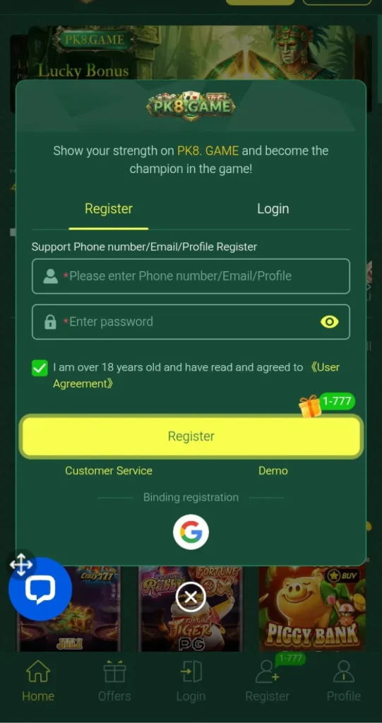 Many users search How to register on PK8 Game platform. Follow these simple steps: