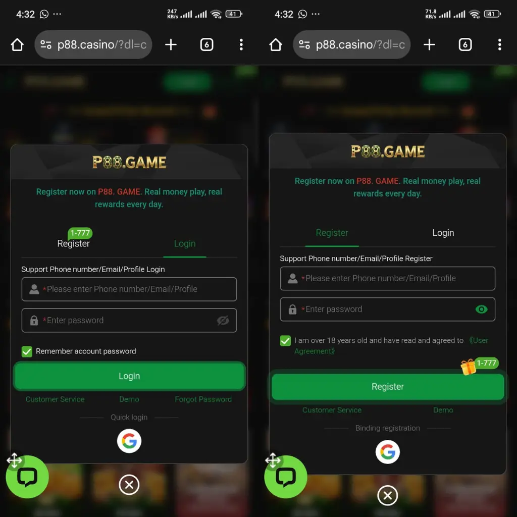 How to Register and Login on P88 Game