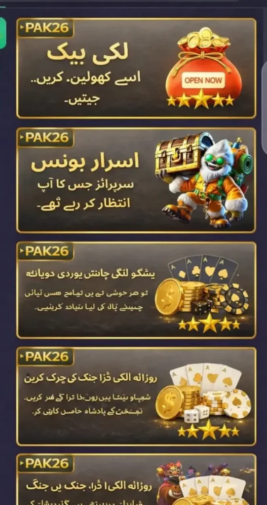 Because of its simple design, fast performance, and easy registration, PAK26 has become a popular earning app in Pakistan. It supports Android devices, offers regular updates, and provides daily rewards for active users. Therefore, PAK26 is not just a gaming app it is a digital earning platform for Pakistani users.