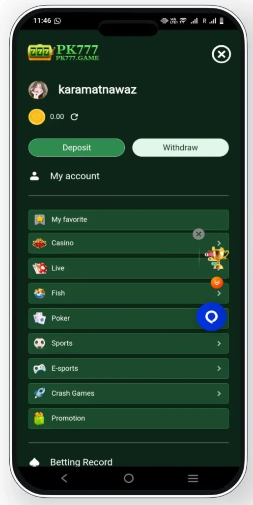 Secure Transactions: PAK77 APK provides a safe and encrypted transaction system for both deposits and withdrawals. Users can easily transfer money through trusted mobile wallets like JazzCash and Easypaisa. Each transaction is protected, ensuring privacy and security. This reliable payment system makes users feel comfortable while handling their money inside the app.