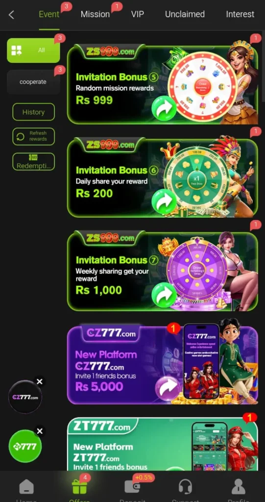 ZS999 offers different bonuses such as daily login rewards, sign-up bonuses, and referral rewards. These bonuses help users earn extra money without extra effort. Reward programs also motivate users to stay active and play more games.